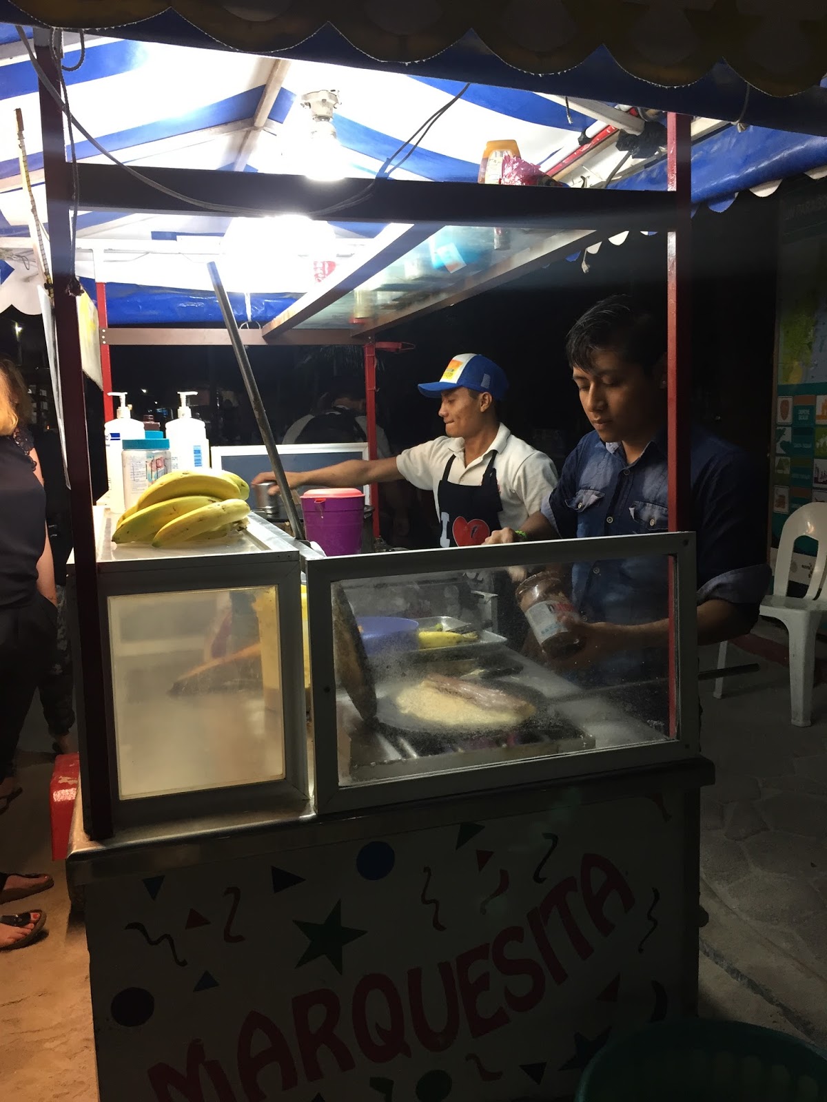 A great speciality from here: Marquesitas! The cousin of crepes – We love ’em with Nutella and cheese. You head right, they mix ’em and it tastes great!!
